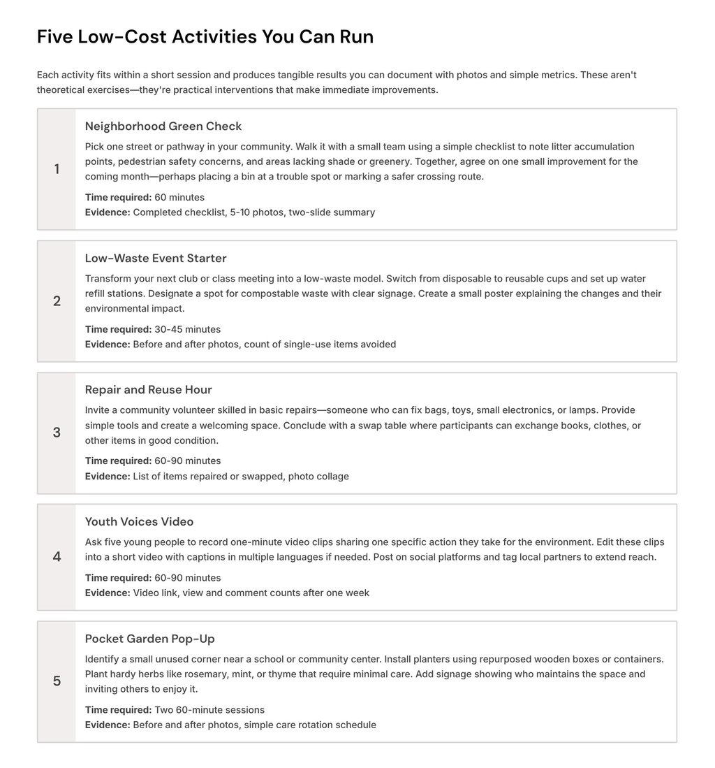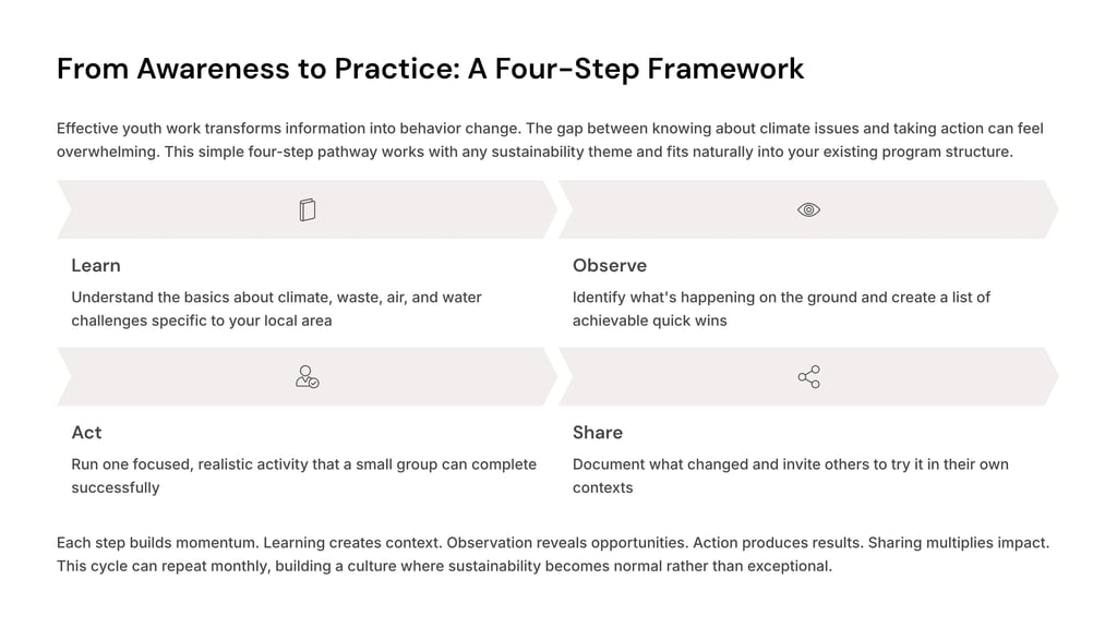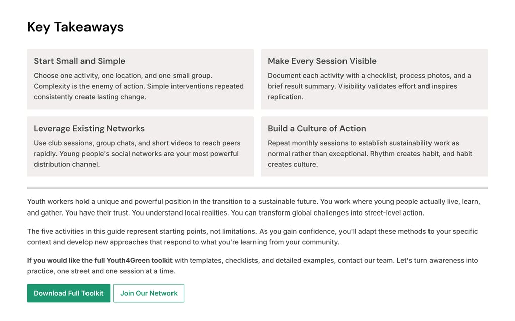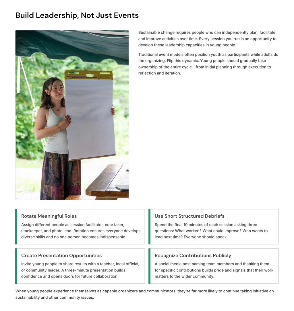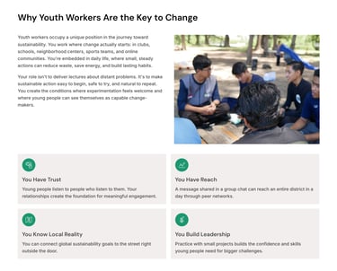 Young people will live the longest with today's decisions. When they have the right support and simple tools, they turn climate concern into practical action. This guide shows how youth workers can channel that energy and help local groups start making a difference right now.